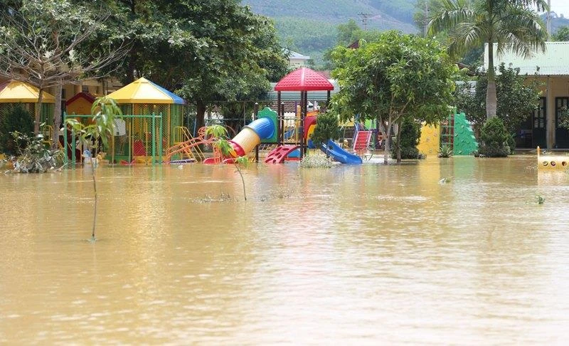 Trường học ở rốn lũ những ngày qua đang bị ngập nên chưa thể khai giảng năm học mới.