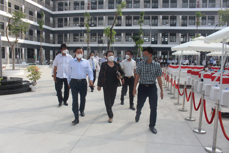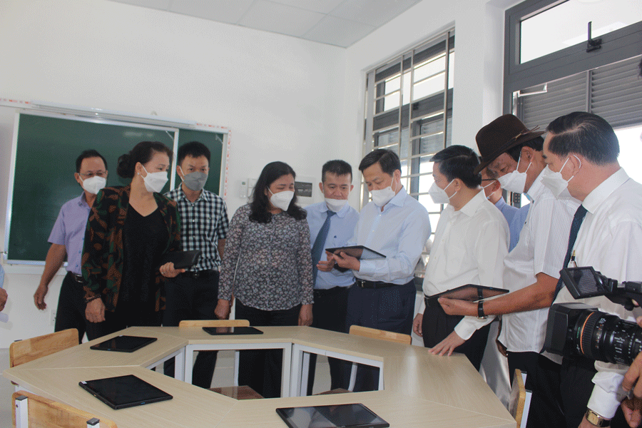 Phó thủ tướng Lê Minh Khái cùng bà Nguyễn Thị Kim Ngân - nguyên Chủ tịch Quốc hội tham quan trường. Ảnh: ĐH