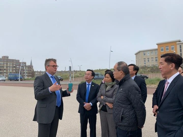 Ủy viên Bộ Chính trị, Bí thư Thành ủy Nguyễn Thiện Nhân thăm công trình đê đa chức năng Scheveningen chiều 20-5. Ảnh: ĐỨC HIỂN