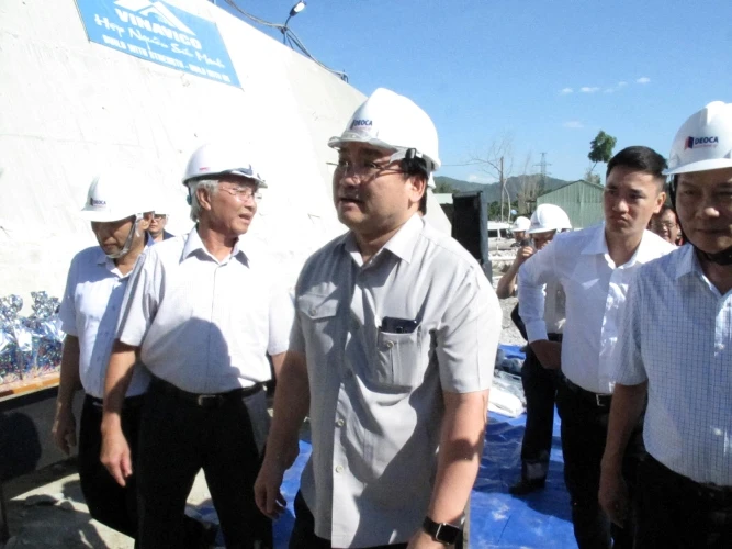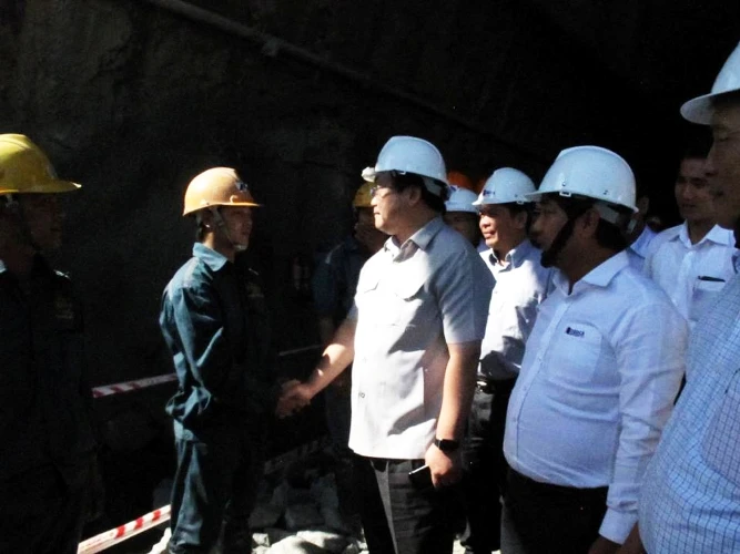 Phó Thủ tướng Hoàng Trung Hải thị sát dự án hầm đường bộ qua đèo Cả. Ảnh: TẤN LỘC