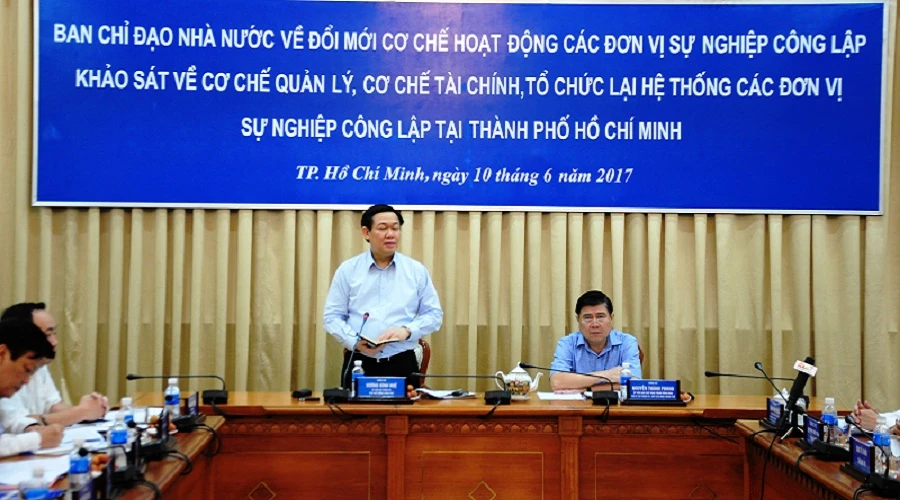 Làm việc với UBND TP.HCM, ông Huệ cho rằng việc đổi mới, sắp xếp lại đơn vị sự nghiệp công lập không phải là cắt giảm cơ học số lượng đơn vị mà là xóa bỏ bất cập, cắt giảm lãng phí ngân sách thực hiện dịch vụ công, tinh giản biên chế, mục đích cuối cùng là nâng cao năng lực, hiệu lực và chất lượng trong cung ứng dịch vụ công.