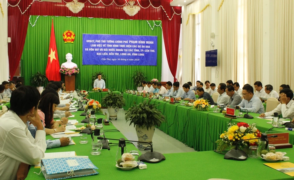 Phó Thủ tướng Phạm Bình Minh hỏi lãnh đạo TP Cần Thơ cam kết đến cuối năm sẽ giải ngân được bao nhiêu vốn ODA trong tổng số vốn thực hiện trong năm 2020 nêu trên? Về việc này, Chủ tịch UBND TP Cần Thơ Lê Quang Mạnh nêu lại chi tiết tiến độ thực hiện thực tế của các dự án và cho biết đến cuối năm TP cố gắng giải ngân được khoảng 2.100 tỉ đồng.