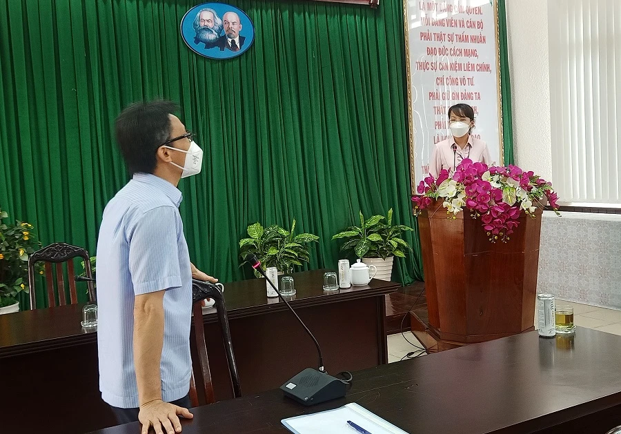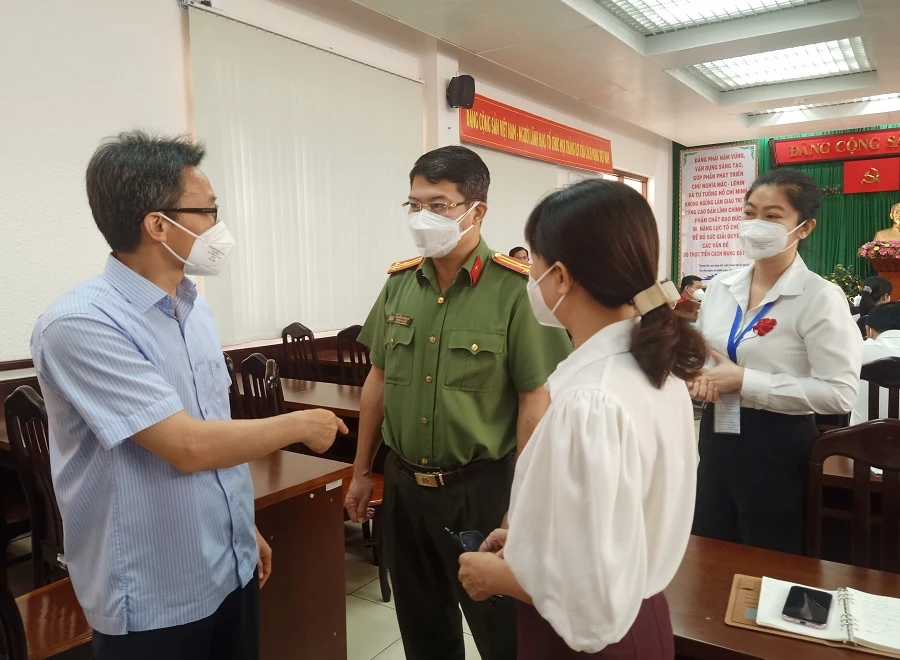 Ngay sau đó, trao đổi với Phó Thủ tướng, bà Nguyễn Thị Liễu, Bí thư Đảng ủy phường 10, cho biết phường có nhiều ca nhiễm COVID-19, được xếp vào “vùng đỏ”. Do đó một trong những vấn đề khiến bà lo nhất là công tác xét nghiệm để bóc tách F0 ra khỏi cộng đồng, ngoài ra còn là là công tác điều trị cho các F0 và vấn đề đảm bảo an sinh cho người dân trên địa bàn phường.