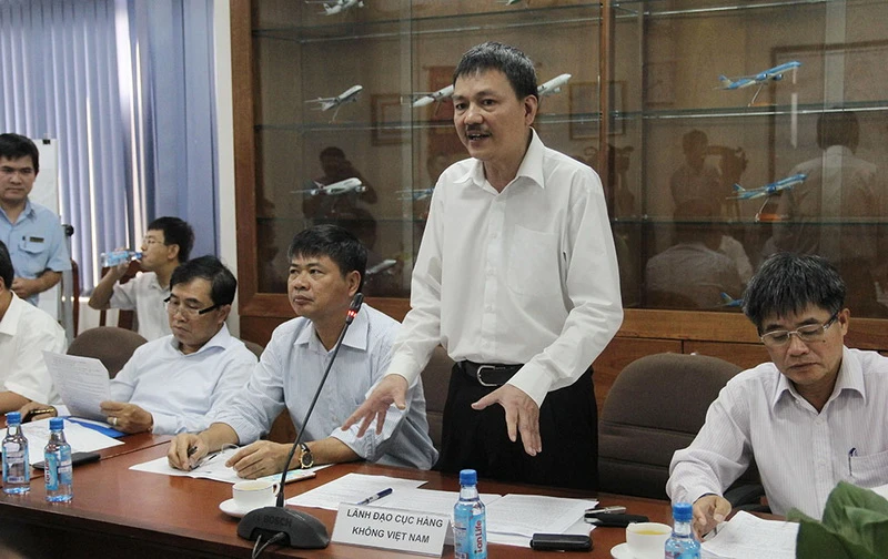 Lãnh đạo Cục Hàng không Việt Nam phát biểu ý kiến tại buổi làm việc. Ảnh: HOÀNG GIANG