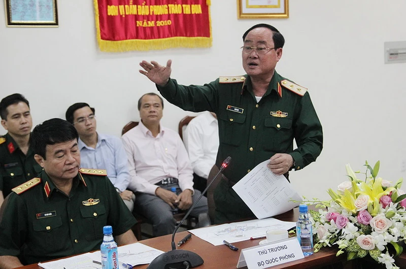 Trung tướng Trần Đơn - Thứ trưởng Bộ Quốc phòng phát biểu ý kiến tại buổi làm việc. Ảnh: HOÀNG GIANG