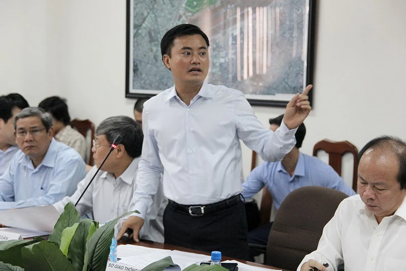 Giám đốc Sở GTVT TP.HCM Bùi Xuân Cường báo cáo tại buổi làm việc. Ảnh: HOÀNG GIANG