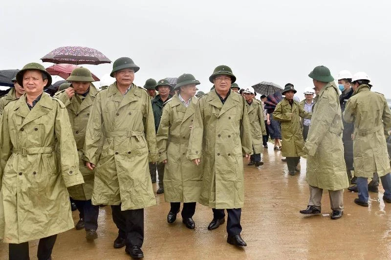 Phó Thủ tướng Trịnh Đình Dũng dẫn đầu đoàn công tác đi kiểm tra công tác ứng phó bão số 5 tại Huế. Ảnh: VGP