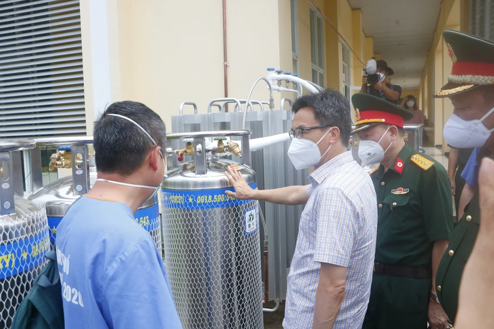 Nơi cung cấp oxi tại Bệnh viện dã chiến truyền nhiễm số 5B. Ảnh: LÊ ÁNH