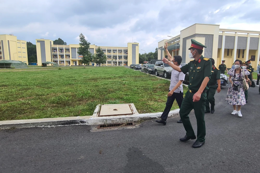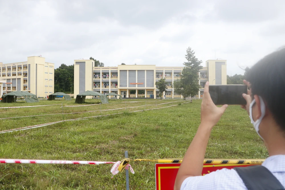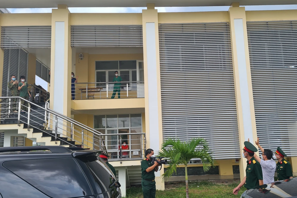 Phó Thủ tướng vẫy tay chào thăm hỏi cán bộ, y bác sĩ và các F0 tại Bệnh viện dã chiến truyền nhiễm số 5B. Ảnh: LÊ ÁNH