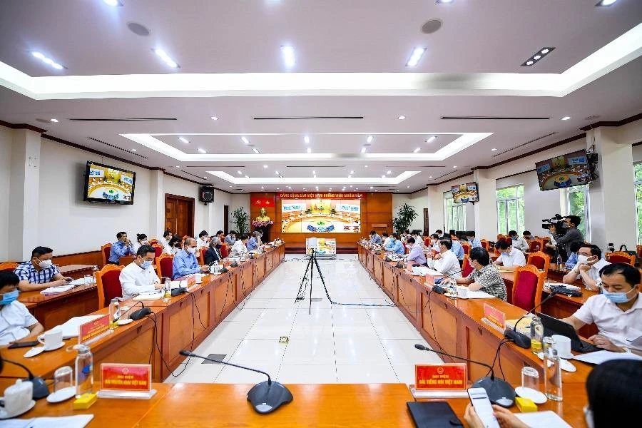 Các đại biểu tham dự hội nghị trực tuyến tại điểm cầu Bộ NN&PTNT. Ảnh: VĂN NGÂN