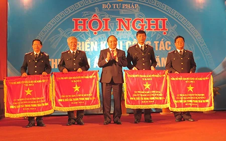 Cũng trong đợt này, Phó Thủ tướng Nguyễn Xuân Phúc cũng thay mặt Chính phủ trao tặng cờ thi đua cho ba đơn vị xuất sắc trong thi hành án dân sự là Cục Thi hành án dân sự tỉnh Bình Định, Cục Thi hành án dân sự tỉnh Nam Định, Cục Thi hành án dân sự tỉnh Lào Cai.