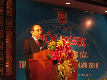 Phát biểu tại hội nghị, Phó Thủ tướng Nguyễn Xuân Phúc đã biểu dương, đánh giá cao những thành quả trong năm qua của Bộ Tư pháp trong việc tổ chức thực hiện thi hành án dân sự. Phó Thủ tướng Nguyễn Xuân Phúc cũng yêu cầu Bộ Tư pháp tiếp tục tăng cường thực hiện giải quyết dứt điểm số vụ khiếu nại, tố cáo liên quan đến thi hành án kéo dài, tăng cường tính nghiêm minh của pháp luật, bảo đảm các bản án đều phải được thi hành; chú trọng công tác cán bộ, có biện pháp kiểm tra, kiểm soát để chống tham nhũng, tiêu cực. Bên cạnh đó, Phó Thủ tướng Nguyễn Xuân Phúc cũng biểu dương lực lượng thi hành án trong quân đội trong năm qua đã đạt được nhiều kết quả trong việc thi hành án.