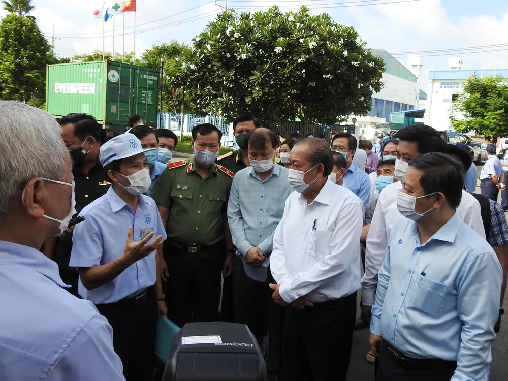 Kết luận buổi làm việc, Phó Thủ tướng lưu ý TP.HCM nhìn sang bài học từ Ấn Độ, khi dịch bệnh lan rộng tại nước này nhiều bệnh nhân đã không có bình oxy để thở. Do đó, TP.HCM phải lường trước kịch bản xấu nhất để chuẩn bị đủ phương tiện bình oxy, máy thở, kể cả ECMO kịp thời cấp cứu các bệnh nhân.