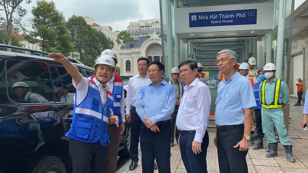 Tiếp đến, đoàn di chuyển về ga Ba Son, một trong ba ga ngầm của tuyến metro số 1. Sau đó, đoàn thị sát đi dọc đường tàu về ga Nhà hát TP.