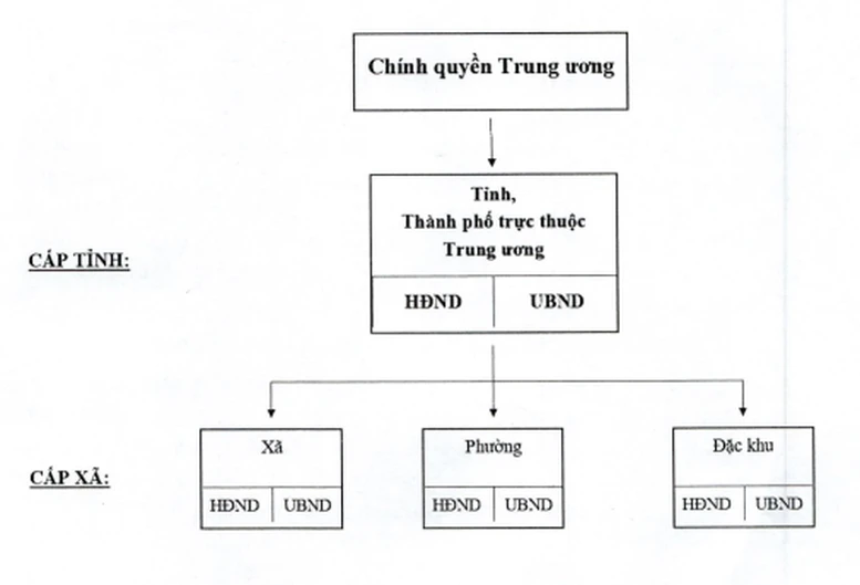 Theo Đề án, phương án tổ chức chính quyền địa phương 02 cấp như sau: Cấp tỉnh gồm tỉnh, thành phố trực thuộc trung ương; (2) cấp xã gồm xã, phường (trong đất liền) và đặc khu (ở hải đảo). Theo đó, bỏ ĐVHC cấp huyện và thị trấn.