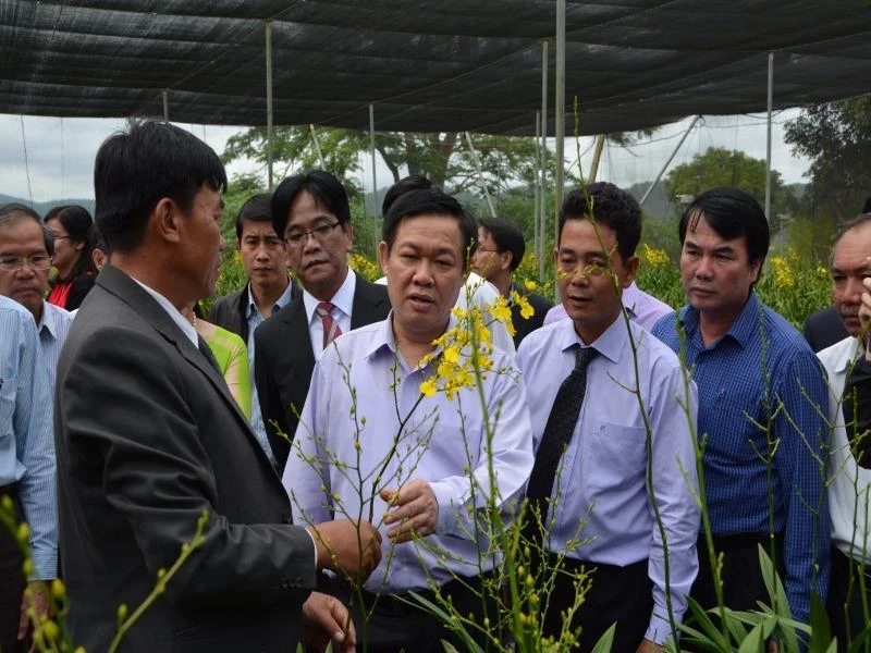 Trong khuôn khổ chuyến công tác dự Hội nghị sơ kết 5 năm thực hiện Luật HTX năm 2012 khu vực Tây Nguyên và Duyên hải Nam Trung Bộ và ngày mai (7-7) tại Lâm Đồng, ông Vương Đình Huệ, Ủy viên Bộ Chính trị, Phó Thủ tướng Chính phủ và đoàn công tác đã tới thăm các HTX nông nghiệp Công ty chuyên sản xuất nông nghiệp trên địa bàn.