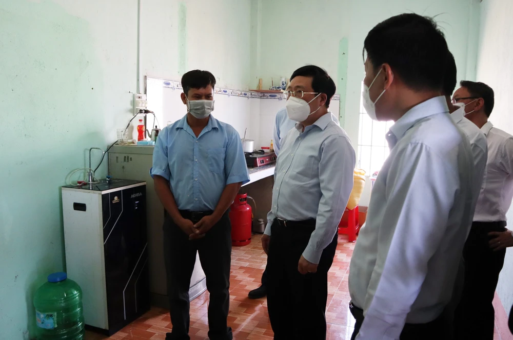 Phó Thủ tướng bày tỏ niềm vui mừng khi thấy điểm dân cư được xây dựng khang trang, có đầy đủ các thiết bị phục vụ nhu cầu thiết yếu cho đời sống hàng ngày của người dân.