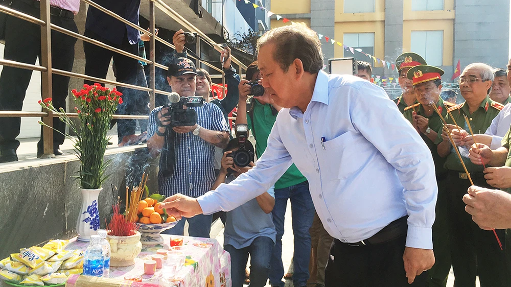 Phó Thủ tướng Thường trực Trương Hòa Bình thắp hương tại chung cư Carina Plaza . Ảnh Nguyễn Tân.