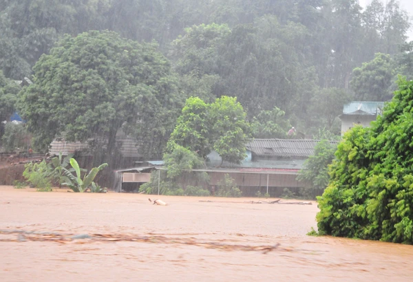 Mưa lũ khủng kiếp tại Lào Cai khiến nhiều ngôi nhà ngập sâu trong nước.