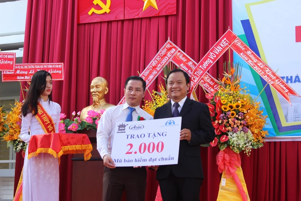Công ty nón bảo hiểm Á Châu trao tặng trường 2.000 chiếc mũ bảo hiểm đạt chuẩn