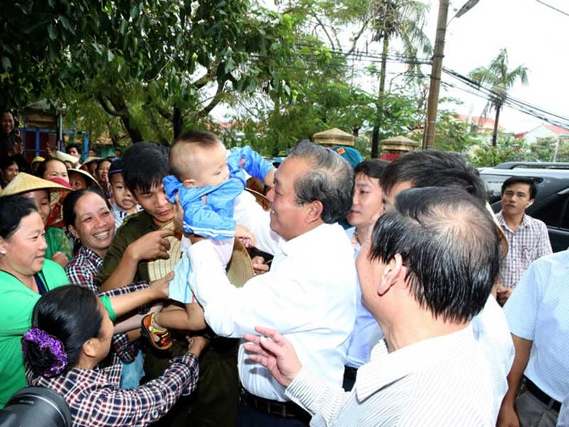 Phó Thủ tướng Trương Hòa Bình gặp gỡ người dân xã Cảnh Dương. Ảnh: plo.vn