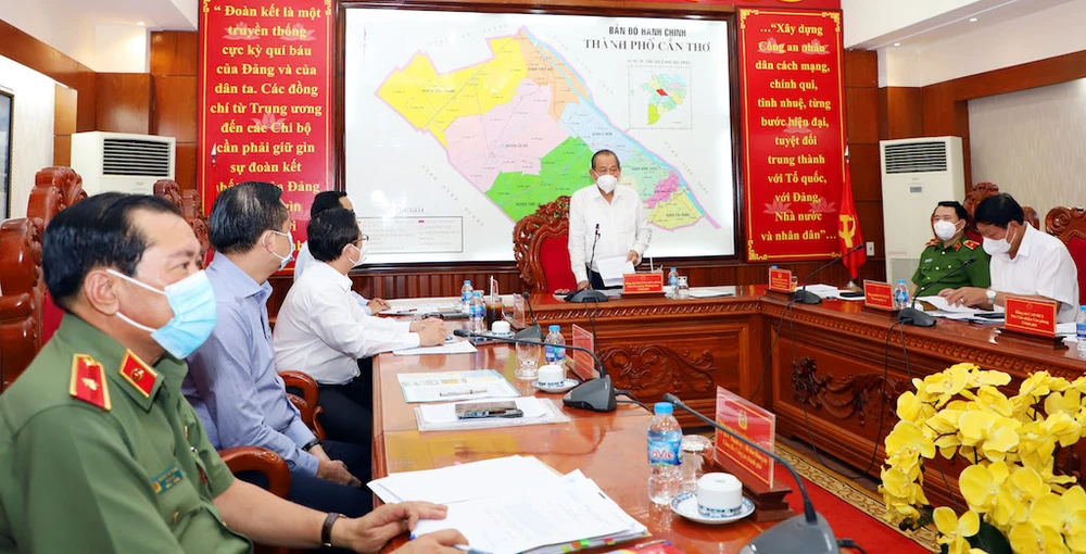 Bên cạnh đó, Phó Thủ tướng Thường trực yêu cầu TP Cần Thơ cần phát huy hơn nữa sức mạnh khối đại đoàn kết trong phòng chống dịch, song song đó đảm bảo công tác an sinh xã hội, chú trọng quan tâm đến người nghèo, người yếu thế, không để người dân thiếu đói. Bên cạnh đó tổ chức phân phối, đảm bảo hàng hóa đầy đủ, thông tin chính xác, kịp thời không để người dân có tâm lý hoang mang...