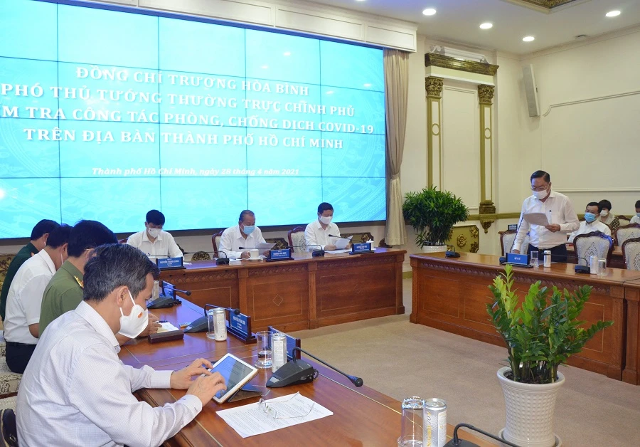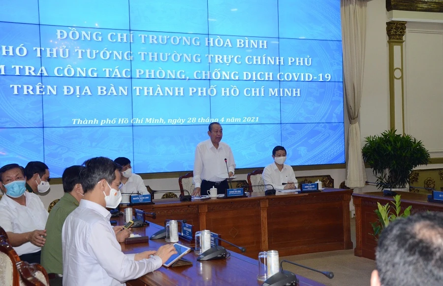Sáng 28-4, Phó Thủ tướng Thường trực Trương Hòa Bình đã kiểm tra công tác phòng chống dịch COVID-19 trên địa bàn TP.HCM.