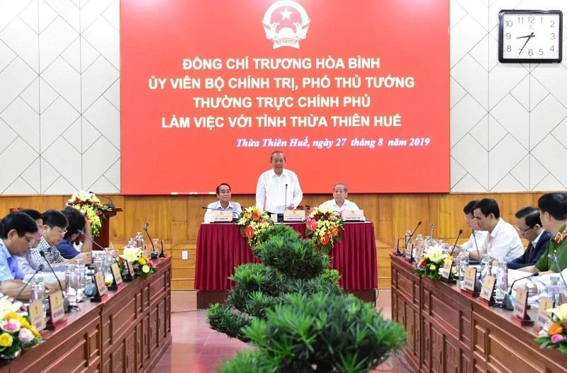Phó Thủ tướng thường trực Chính phủ Trương Hòa Bình làm việc với tỉnh Thừa Thiên-Huế. Ảnh: N.MINH