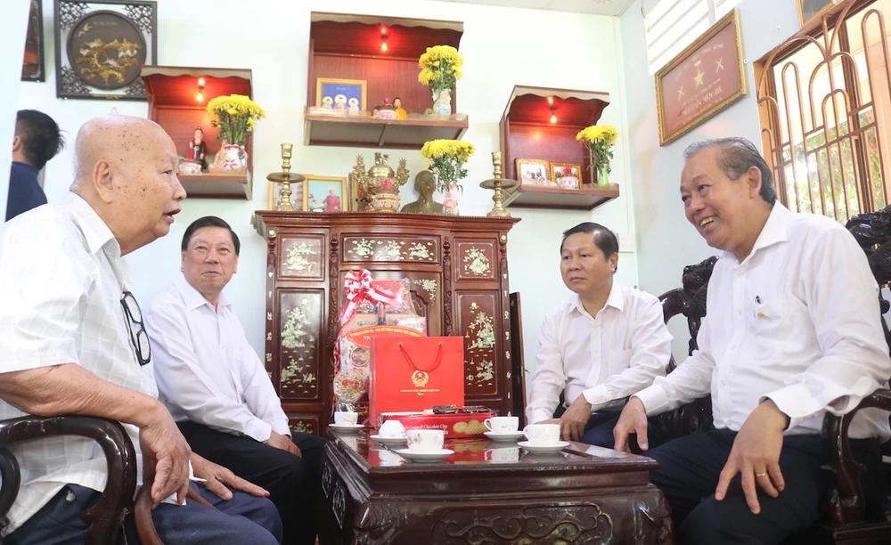 Phó Thủ tướng Trương Hòa Bình đến thăm, tặng quà cho ông Nguyễn Văn Bá (gia đình có công) ở huyện Vũng Liêm. Ảnh: Hải Dương