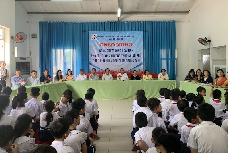 Phó Thủ tướng Thường trực Chính phủ Trương Hoà Bình cùng phu nhân đến thăm, tặng quà tại Trung tâm nuôi dạy trẻ khuyết tật Võ Hồng Sơn.