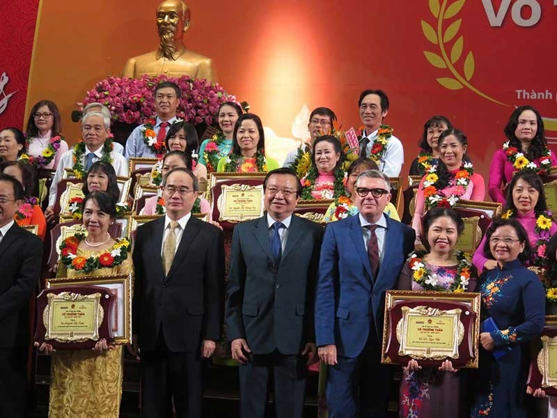 • Cũng trong sáng 19-11, 40 nhà giáo tiêu biểu đang giảng dạy, công tác tại TP.HCM đã được tôn vinh giải thưởng Võ Trường Toản năm 2017. Trong đó có sáu cán bộ quản lý, 34 giáo viên đang trực tiếp giảng dạy tại các trường từ mầm non đến THPT, GDTX, TCCN và trường chuyên biệt trên địa bàn TP.