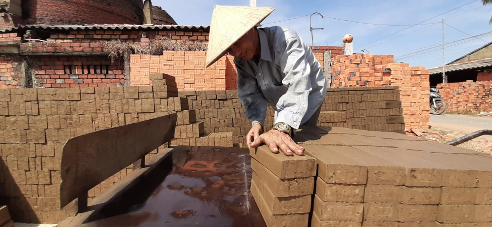 Người dân làm gạch tại "Vương quốc gạch gốm" Mang Thít. Ảnh: HD