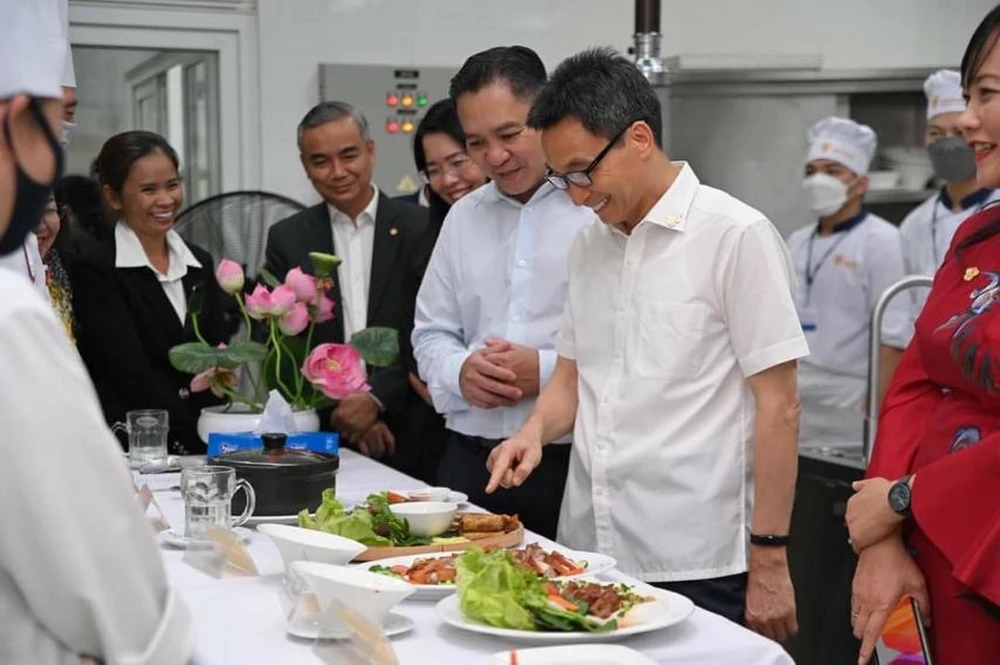 Phó Thủ tướng tham quan các phòng học thực tế ở nhiều bộ môn, từ lễ tân, buồng phòng đến ẩm thực, xưởng bánh và các xưởng thực hành của bộ môn kỹ thuật chế biến món ăn. Ông đánh giá cao công tác chú trọng đào tạo nguồn nhân lực của Saigontourist Group và vai trò của Trường Saigontourist trong công tác đào tạo nguồn nhân lực du lịch không chỉ cho riêng tập đoàn Saigontourist Group mà còn cho ngành du lịch Việt Nam.