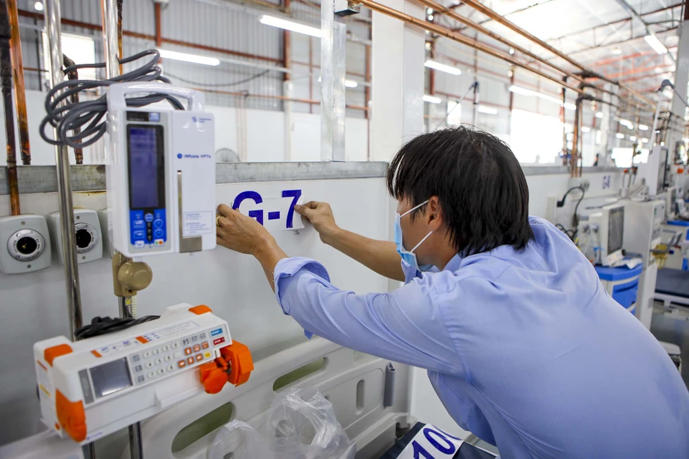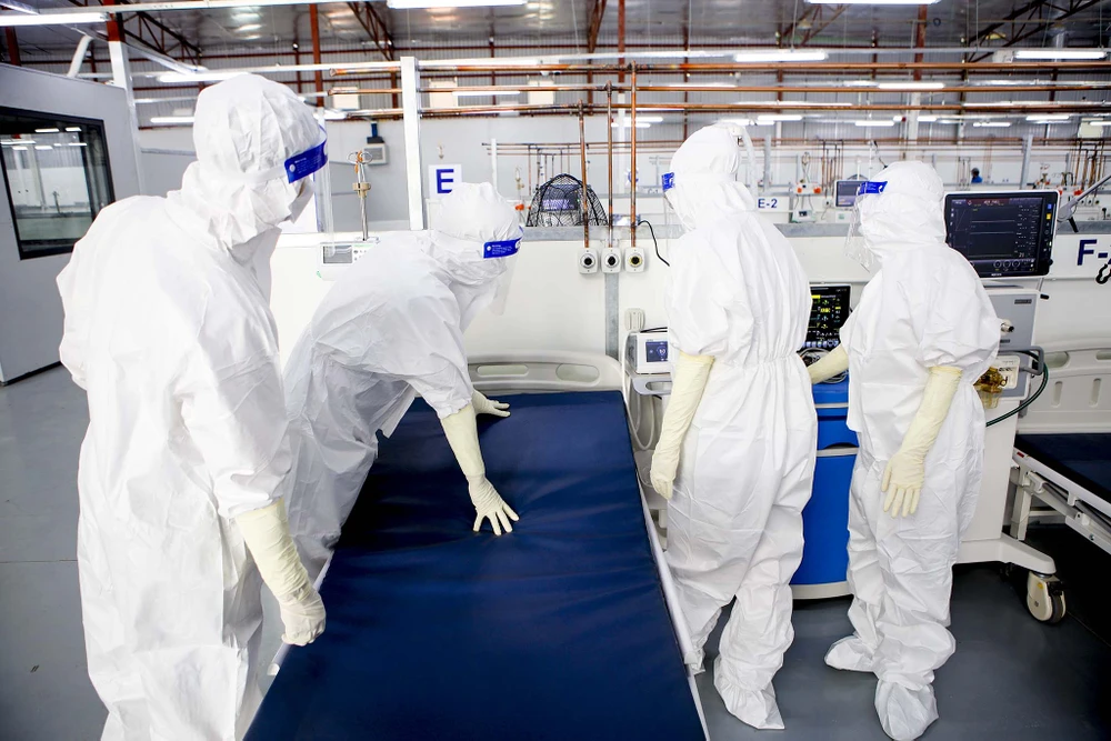 Hiện các nhân viên bệnh viện từng bước kiểm tra máy móc, thiết lập hệ thống máy thở xâm lấn cho các giường bệnh ICU để chuẩn bị nhận bệnh nhân.