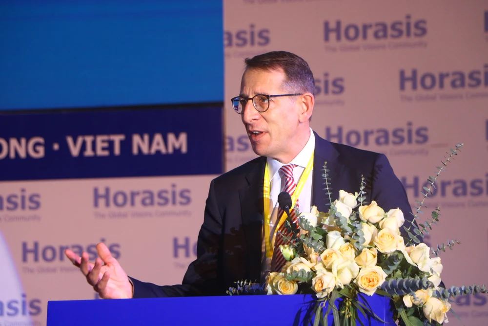 Ông Frank-Jurgen Richter, Chủ tịch Horasis, nói về mục đích của Diễn đàn hợp tác kinh tế châu Á. Ảnh: LÊ ÁNH