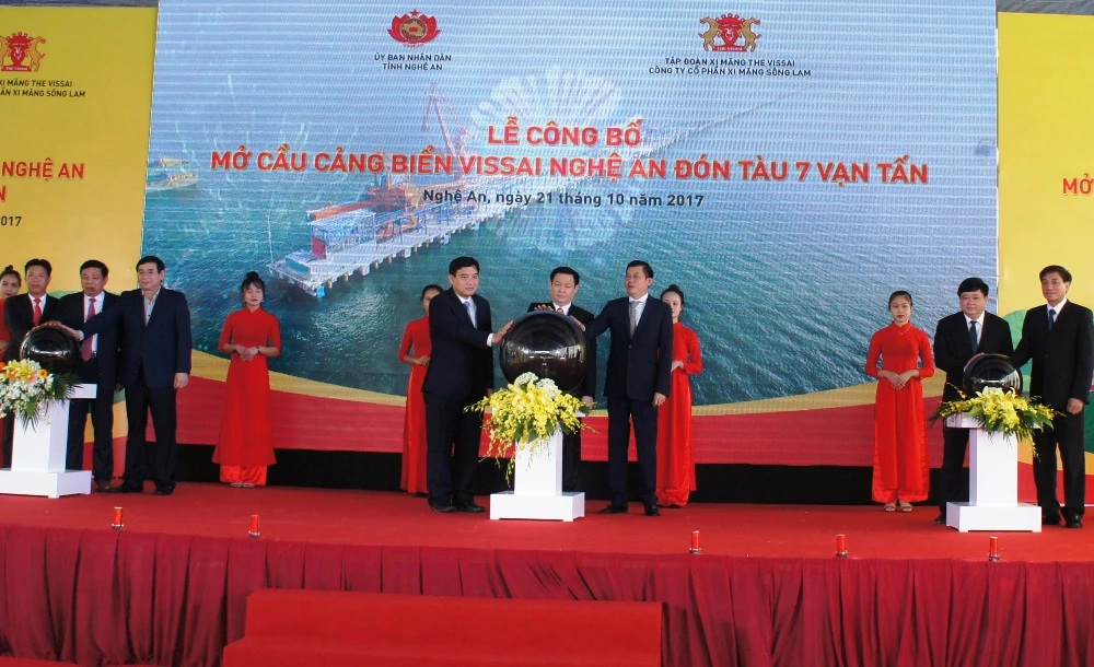 Phó Thủ tướng Vương Đình Huệ cùng đại biểu ở các bộ, ngành trung ương và lãnh đạo tỉnh Nghệ An, Tập đoàn Xi măng The Vissai đã nhấn nút đưa vào hoạt động cảng biển Vissai.