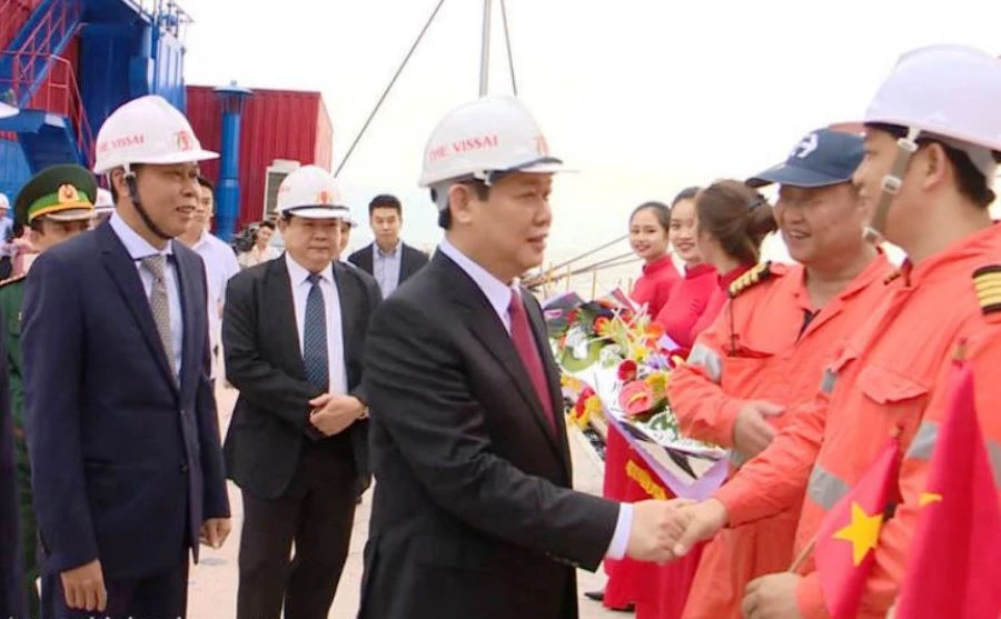 Phó Thủ tướng Vương Đình Huệ chúc mừng thủy thủ đoàn tàu 7 vạn tấn đầu tiên cập cảng Vissai Nghệ An.
