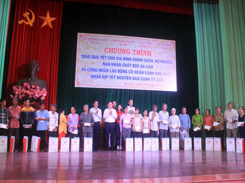 Sáng 7-1, Phó Thủ tướng Vương Đình Huệ cùng đoàn công tác của Tổng LĐLĐ VN, Ủy ban MTTQ VN, Trung ương Hội chữ Thập đỏ VN đã đến tỉnh Bến Tre trao 400 phần quà tết cho gia đình chính sách, hộ nghèo, nạn nhân chất độc da cam và công nhân lao động có hoàn cảnh khó khăn dịp tết Nguyên đán Canh Tý 2020.