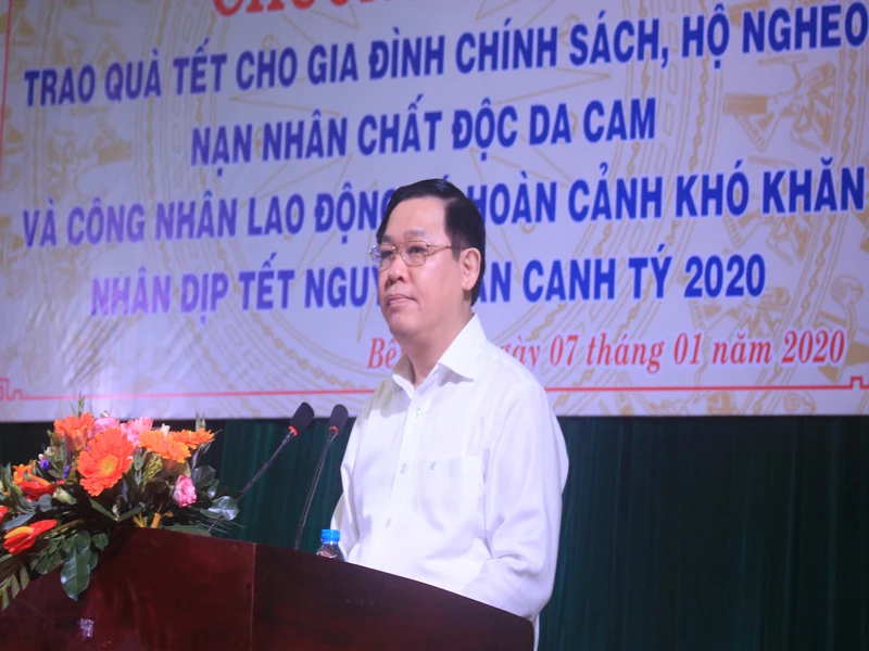 Trong số hơn 13.000 người bị nhiễm chất độc hóa học thì Bến Tre có đến hơn 3.000 người, trong đó có hàng trăm gia đình có 2-4 người bị nhiễm. Phó Thủ tướng cho rằng việc chăm lo, chia sẻ vật chất với tinh thần tương thân tương ái với các nạn nhân và gia đình khó khăn là nghĩa cử cao đẹp trong truyền thống dân tộc ta.