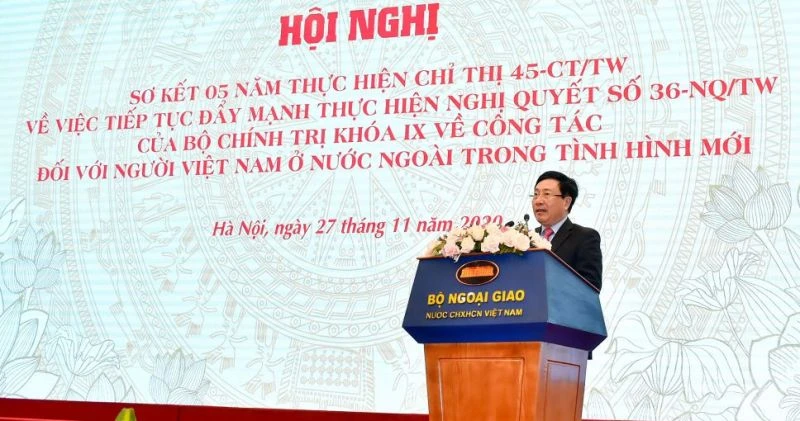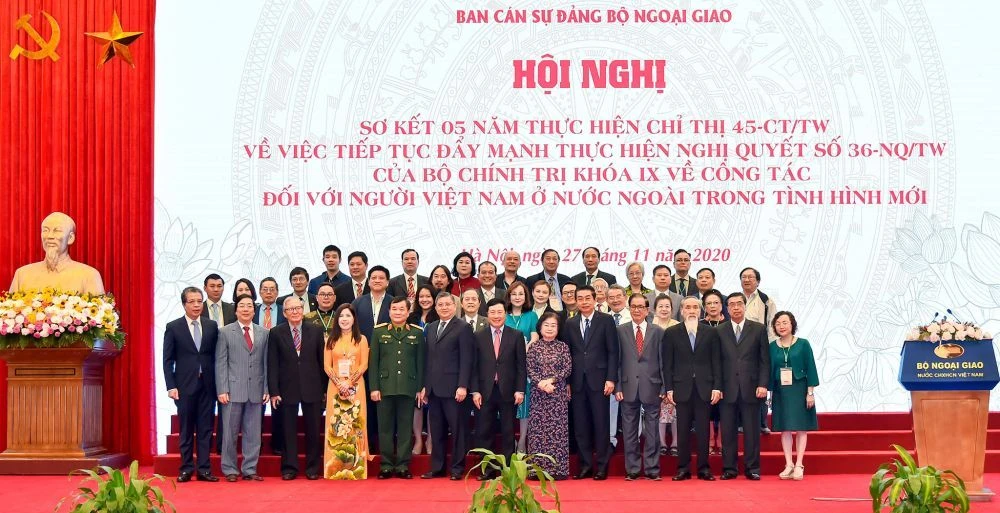 Ngày 27-11, tại Hà Nội đã diễn ra Hội nghị sơ kết năm năm thực hiện Chỉ thị 45/2015 của Bộ Chính trị (khóa XI) về việc tiếp tục đẩy mạnh thực hiện Nghị quyết số 36 của Bộ Chính trị (khóa IX) về công tác đối với người Việt Nam ở nước ngoài trong tình hình mới.