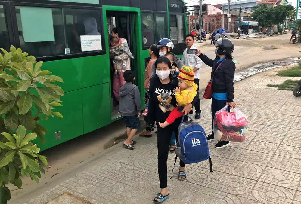 Người dân ở xã Nghĩa An (TP Quảng Ngãi), một xã giáp biển tất bật lên xe để sơ tán đến nơi an toàn. Ảnh: HẢI HIẾU