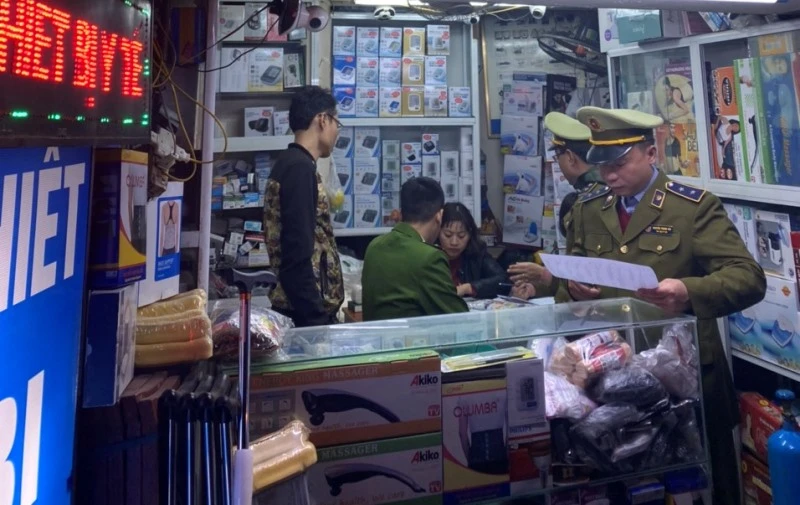 Một cơ sở kinh doanh trang thiết bị y tế tại Hà Nội bị lực lượng quản lý thị trường xử phạt vì bán khẩu trang với giá cao bất thường. Ảnh: Tổng cục QLTT