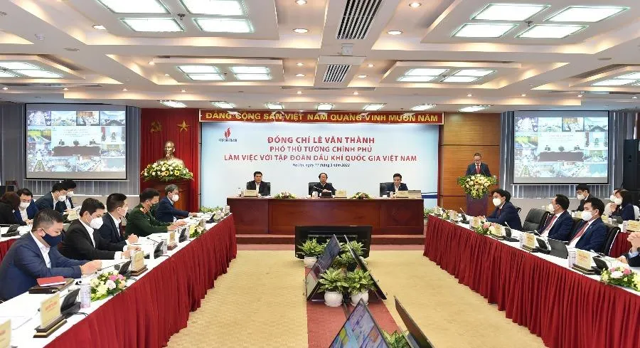 Phó Thủ tướng Chính phủ Lê Văn Thành làm việc với Tập đoàn Dầu khí Quốc gia Việt Nam ngày 11-3. Ảnh: VGP