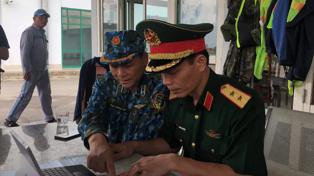 Trung tướng Nguyễn Trọng Bình- Phó tổng tham mưu trưởng Quân đội nhân dân Việt Nam cùng Thiếu tướng Sơn họp chỉ đạo công tác cứu hộ cứu nạn. Ảnh: LÊ PHI