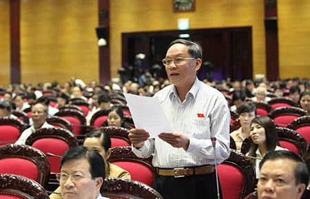 ĐB Nguyễn Văn Rinh (Hải Dương) chất vấn Tổng TTCP Huỳnh Phong Tranh. Ảnh: TTXVN