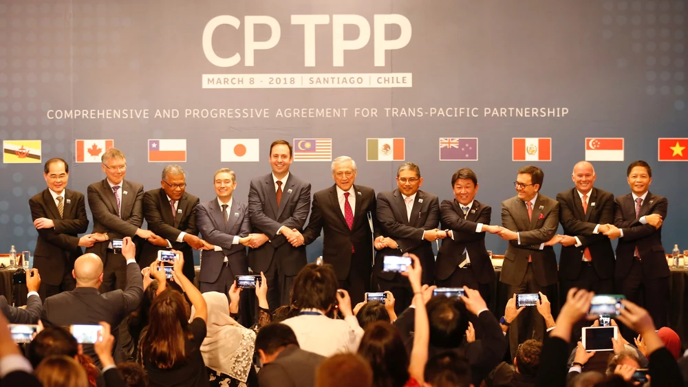 11 quốc gia ký kết hiệp định CPTPP vào ngày 8-3-2018 tại Chile. Ảnh: REUTERS