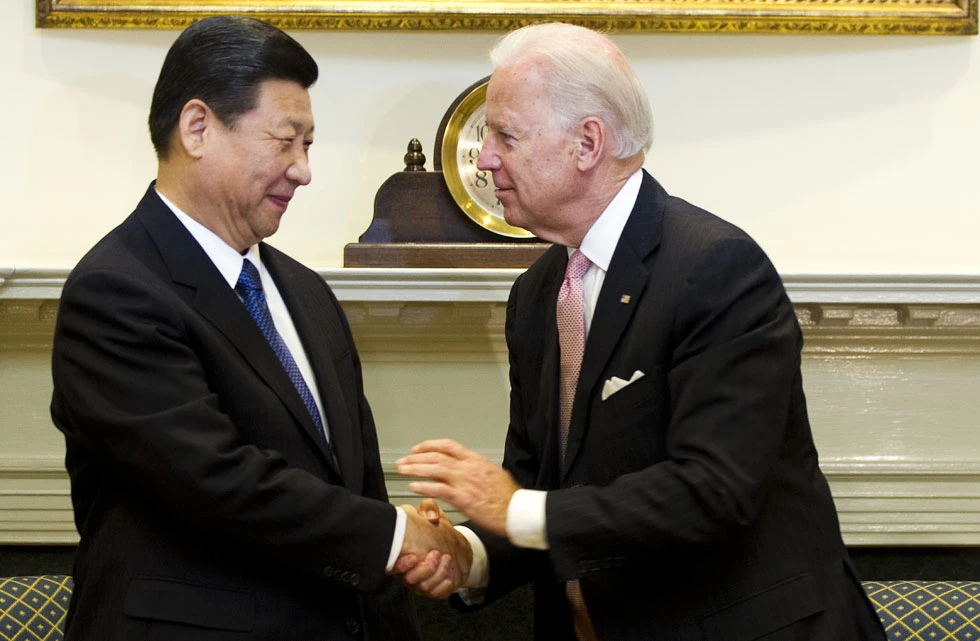 Phó Tổng thống Mỹ Joe Biden (phải) bắt tay ông Tập Cận Bình (trái) trong thời gian ông còn là Phó Chủ tịch nước Trung Quốc. Ảnh: AFP