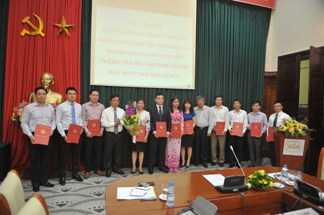 Ông Phạm Huy Thông (mặc áo vest đứng giữa) được bổ nhiệm làm Tổng giám đốc GP Bank. Ảnh: SBV