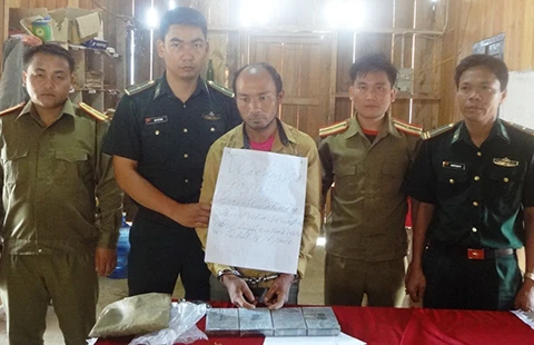 Thạo Xay Hơ (đứng giữa) và tang vật. Ảnh: Đ.LAM