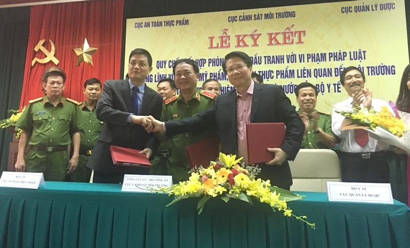 Ngày 14-10, tại Hà Nội, Cục Cảnh sát môi trường (Tổng cục Cảnh sát - Bộ Công an) và Cục Quản lý Dược, Cục An toàn thực phẩm (ATTP) -Bộ Y tế đã ký kết Quy chế Phối hợp phòng ngừa, đấu tranh với vi phạm pháp luật trong lĩnh vực dược, mỹ phẩm và ATTP.